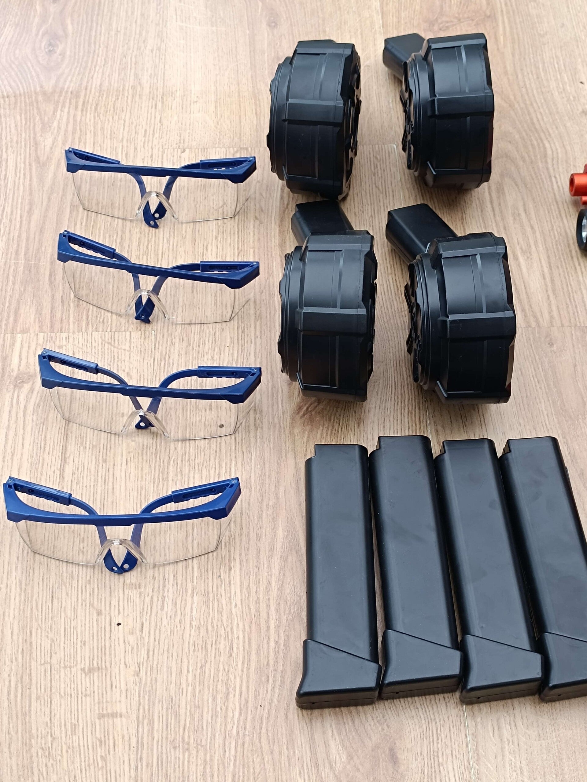 Bij elke gelblaster ontvang je een veiligheidsbril. Het dragen van de bril is verplicht om de ogen te beschermen tijdens het spelen.