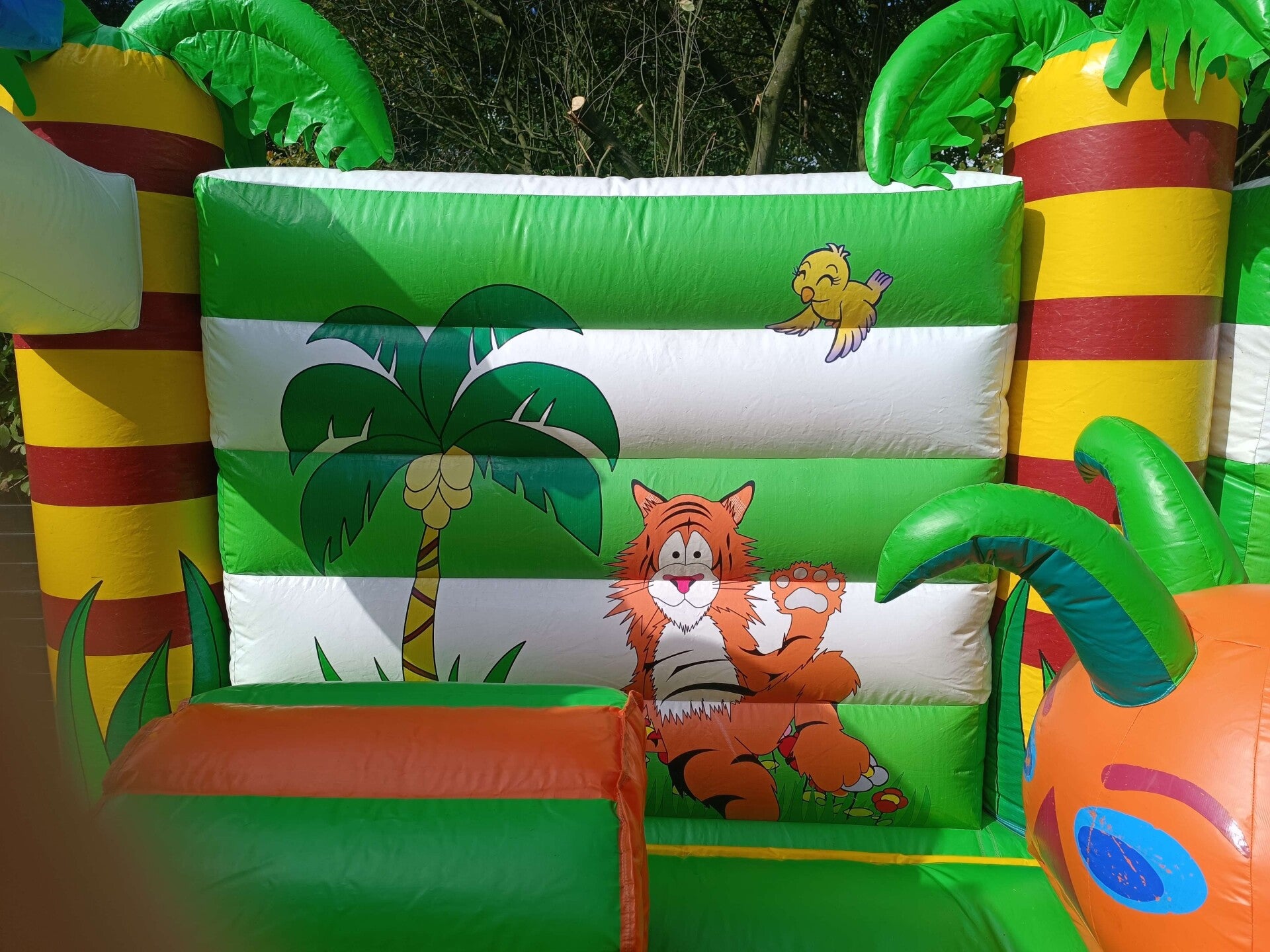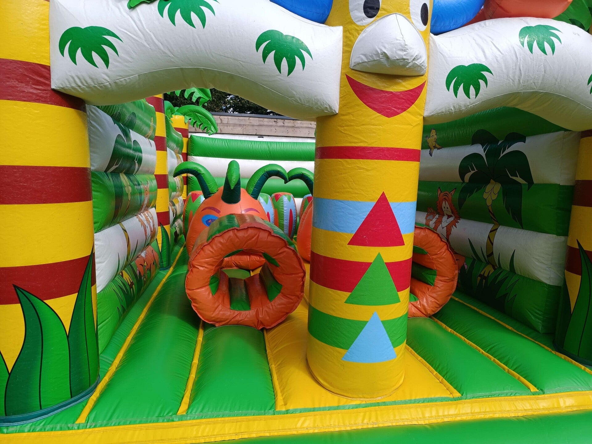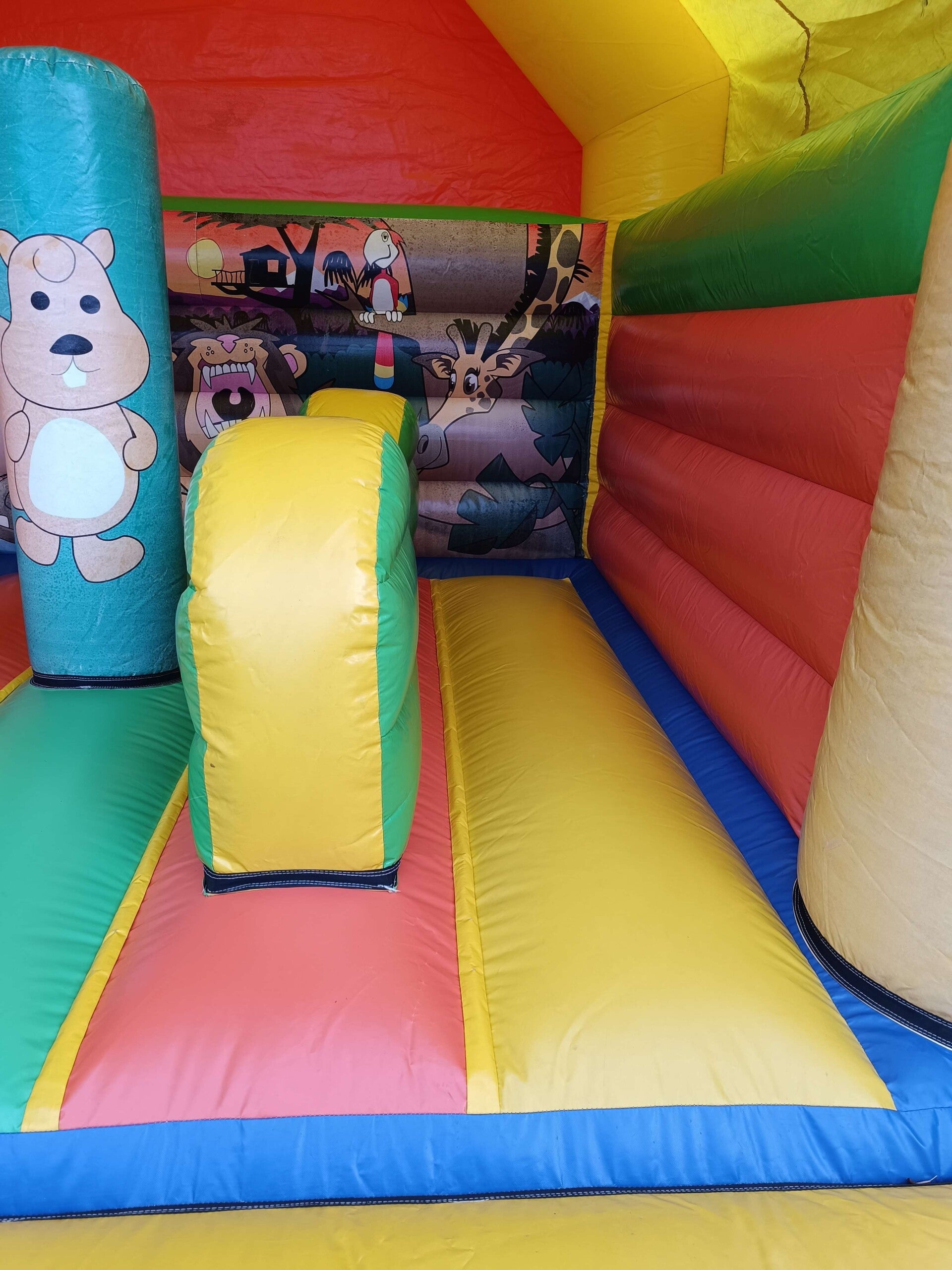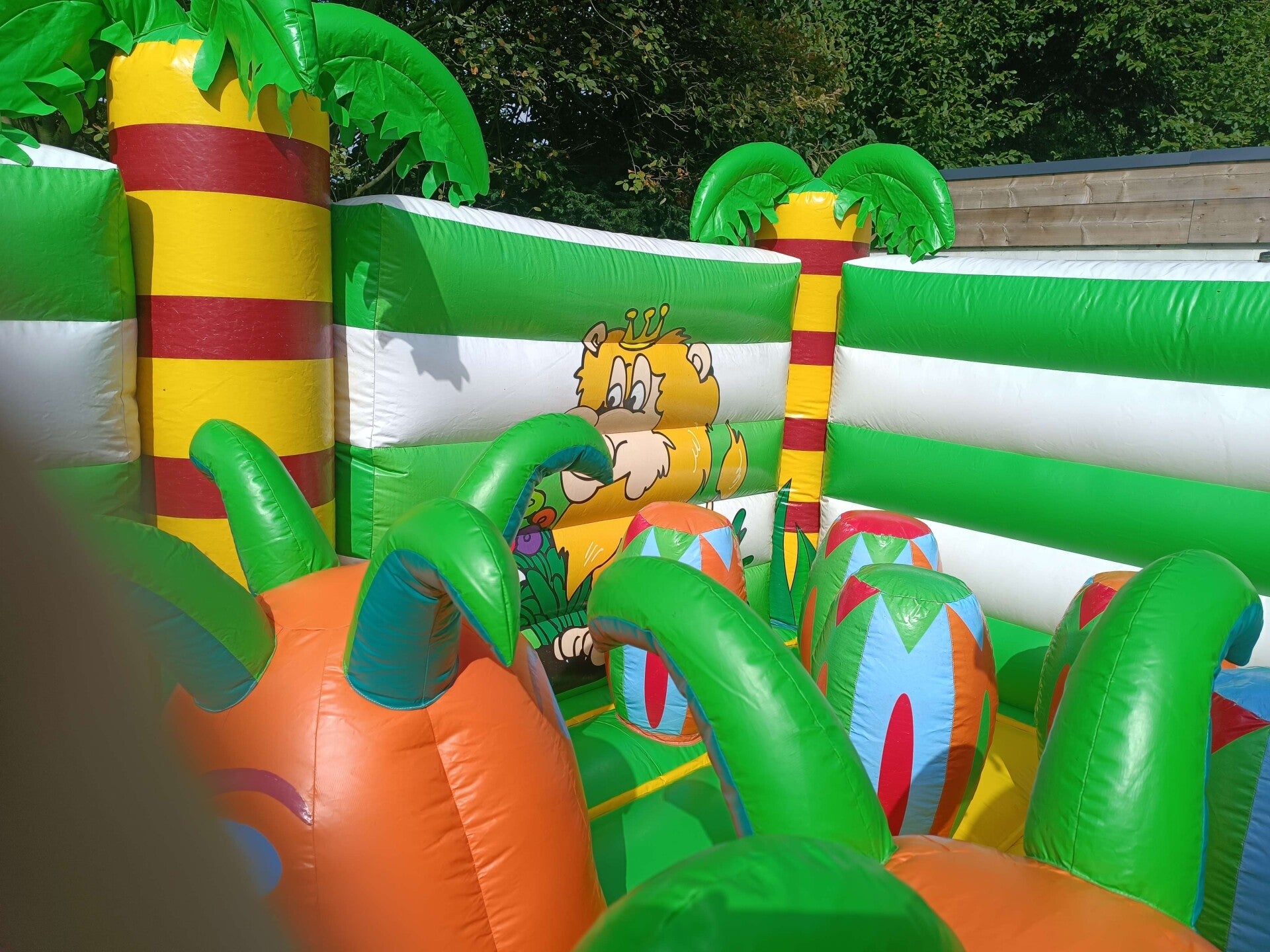 Een leuk springkasteel met obstakels. Makkelijker om overzicht te houden wegens zijn open voorkant.