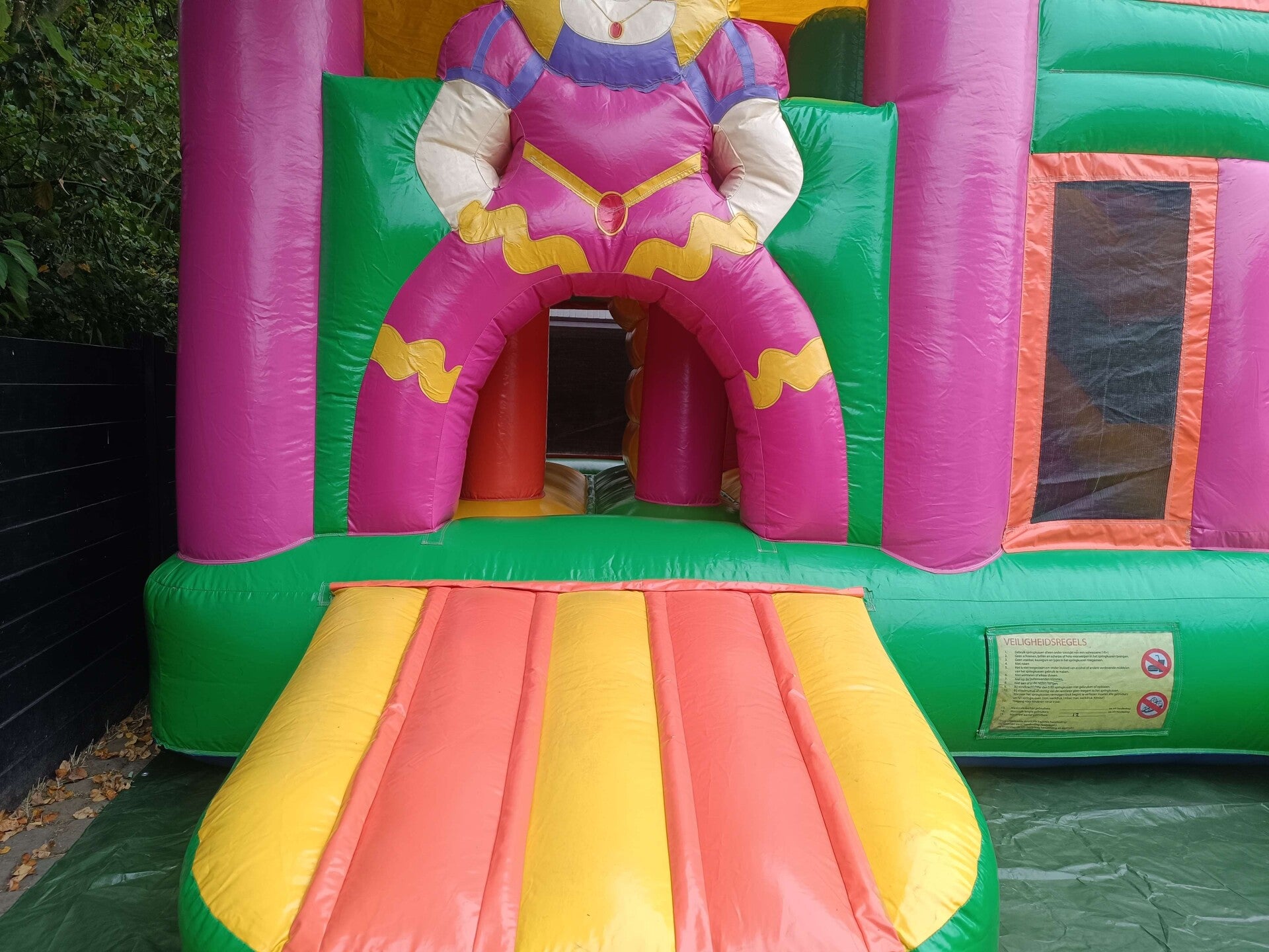 Dit grote multiplay springkasteel is de blikvanger van elk feestje! Met haar scherpe kleuren roept ze ieder kind naar zich toe. Gelukkig is er aan ruimte en speelmogelijkheden geen gebrek.